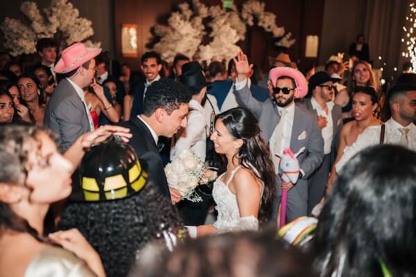 Following the wedding party introductions, Nora and Simon made their grand entrance and were joined on the dancefloor by their wedding party, family, and friends.