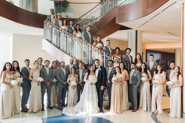 Given the size of the wedding party, there were photos with the ladies and then the guys. Gathering in the resort’s lobby at the bottom of the staircase was the ideal location.