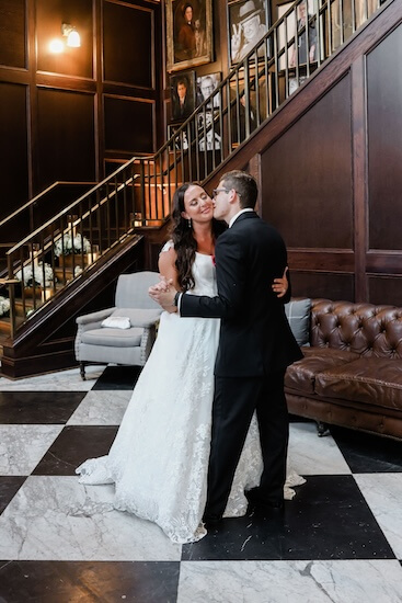 With everyone gathered, the newlyweds made their grand entrance down the staircase. They took to the dance floor.