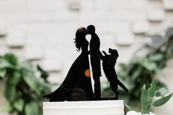 Off to one side was an enormous dessert table filled with bite-sized treats and the couple’s three-tiered white wedding cake. And yes, Bear made it onto the cake topper!