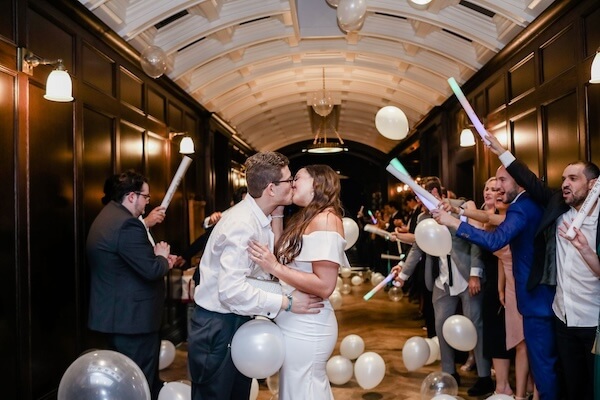The couple closed out the night with a grand exit with a spectacular balloon drop before heading off for the night in a white 1961 Bentley.