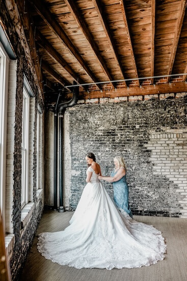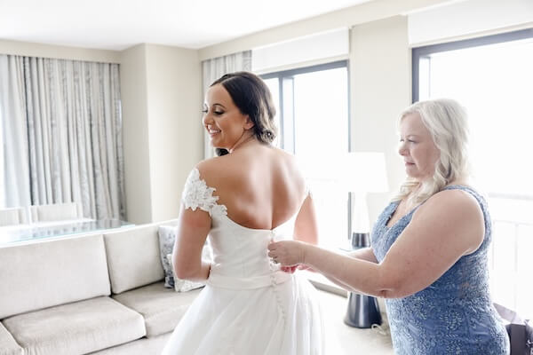 Then, it was time for the Mother of the Bride to help her get dressed. How adorable are they together?
