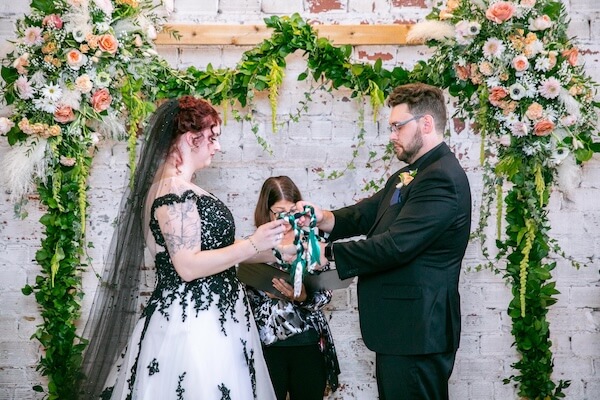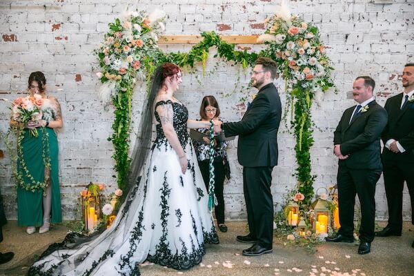 Escorted by her parents, Olivia made her way down the aisle, where the couple exchanged wedding vows and rings and included a wonderful handfasting in their ceremony. Sealing their vows with a kiss, they were off to enjoy time with family and friends.