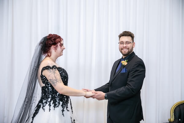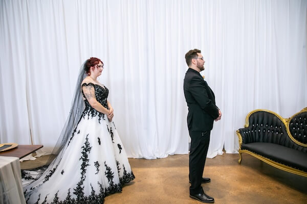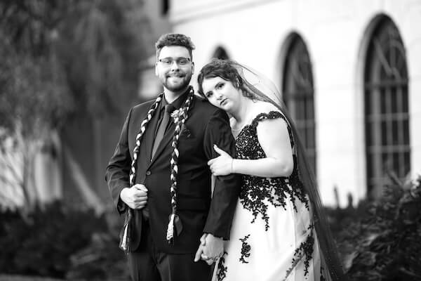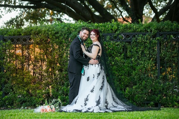 Olivia and Curtis’ Tampa wedding was as unique and fun as they are. The wedding blended a bit of Shabby Chic with a retro Goth vibe. It incorporated beautiful nods to family and tradition while mixing things up with a unique color story in black, gold, ivory, emerald, navy, and soft blush tones.