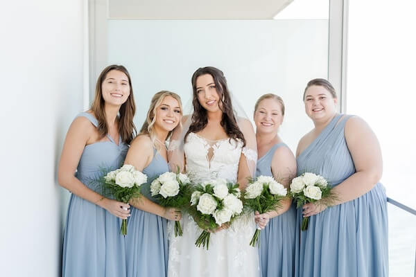 Their Clearwater Beach wedding is a color story of soft dusty blue, white, and driftwood, capturing a casually elegant beachside wedding.