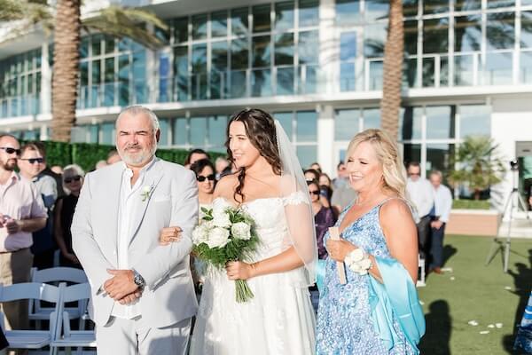 With everyone in their places, Olivia, escorted by her parents, made her entrance to the Bridal Chorus. Tomas began to get the biggest grin as he saw her for the first time.