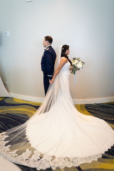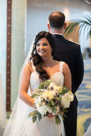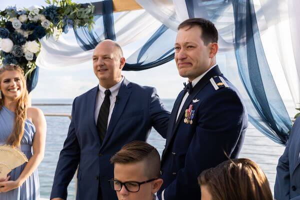 Dane, dressed in his dress blue uniform, barely held back tears as he saw his beautiful bride for the first time.