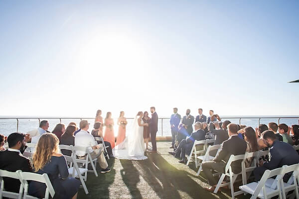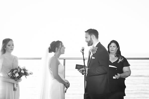 With the shimmering Gulf of Mexico as their backdrop, the guests, groom, and wedding parties took their place.