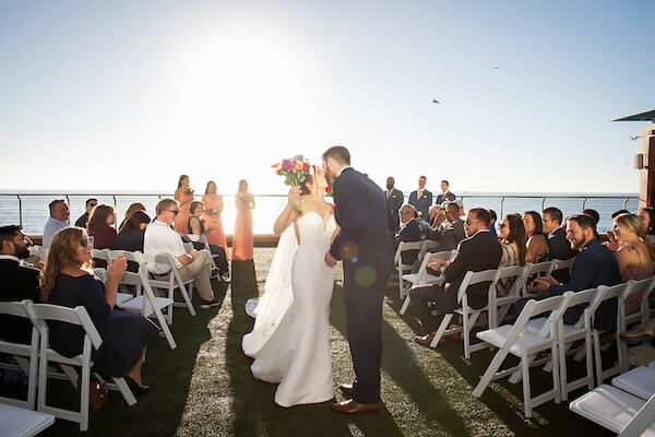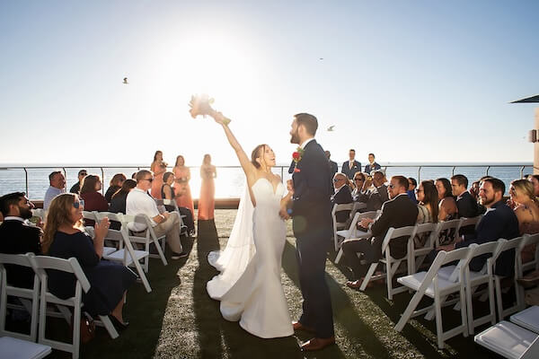 The couple exchanged wedding rings and vows before sealing their vows with a kiss. Following the traditional breaking of the glass, they made their exit to “One Day Like This” by Elbow.