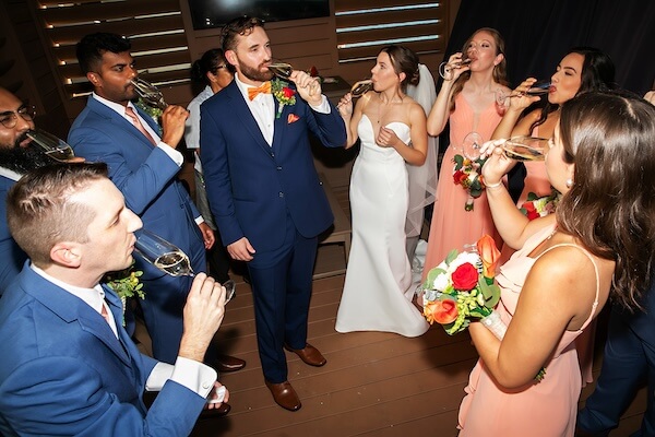 With sunset approaching, it was time for a quick toast with their wedding party and Sarah and Phillip’s portrait session. The Gulf of Mexico, Clearwater Beach, and a magical sunset made for fantastic wedding photos.