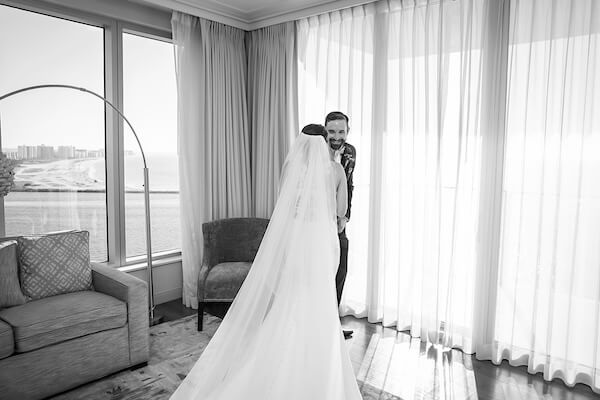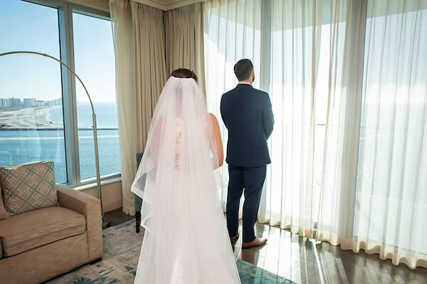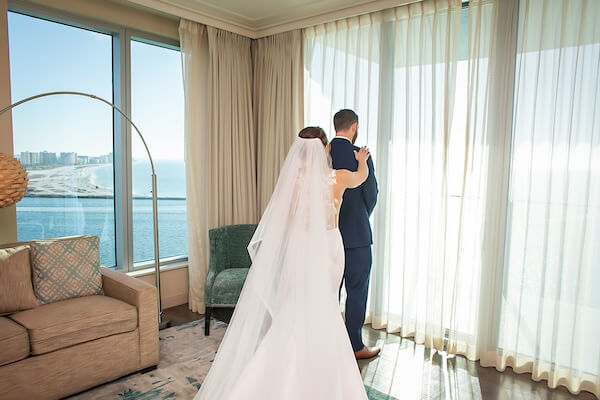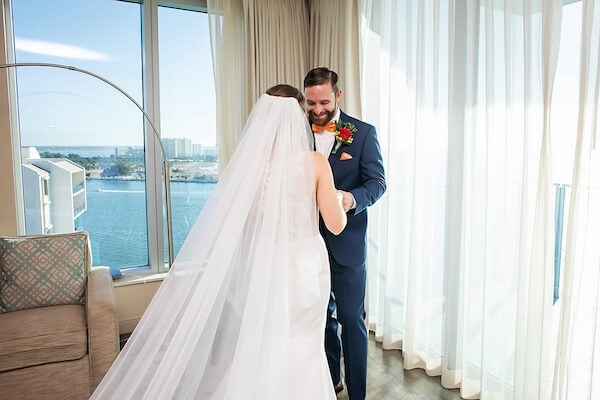 Before their waterfront wedding ceremony, the bride and groom-to-be took time away from their family and friends for a first look and some time together.