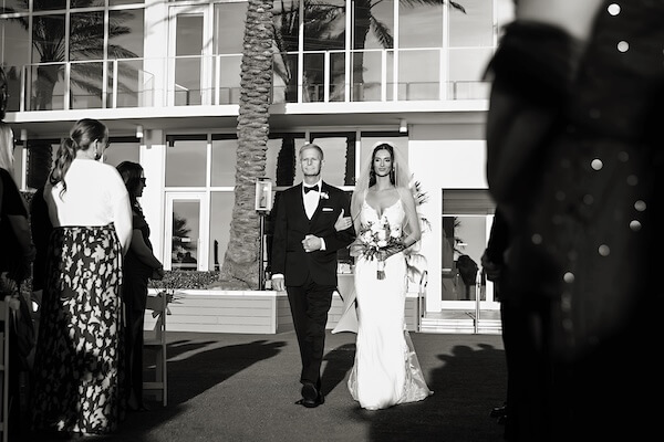 With everyone in their places, the groom made his way down the aisle, followed by the wedding party, and last but certainly not least, his stunning bride-to-be, escorted by her father to an instrumental version of “I Can’t Help Falling In Love.”