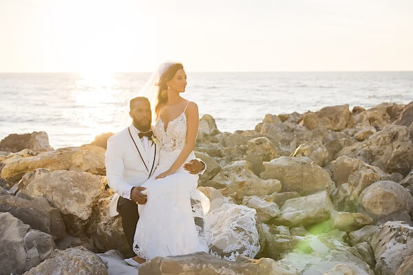 While everyone enjoyed cocktail hour, the newlyweds headed to the beach for some incredible wedding portraits. The Golden Hour, the time just before sunset, boasts the most magical light of the day and is ideal for photography. And nothing beats a beautiful Clearwater sunset!