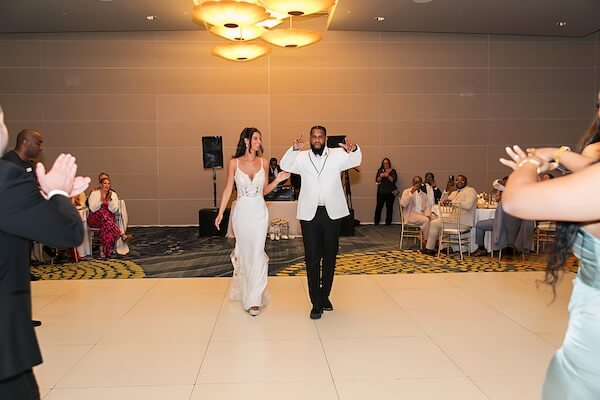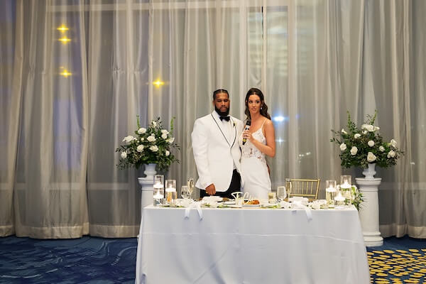Following introductions, the newlyweds took to the dancefloor for their spectacular first dance. Their dance led into special family dances, a welcome by the couple, and several touching toasts.