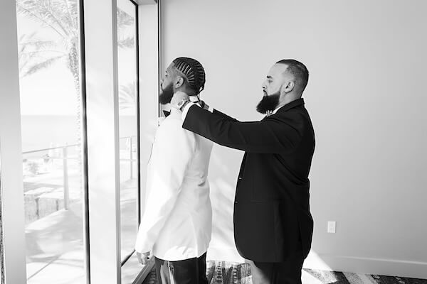 Meanwhile, on another floor of the resort, Kervin was getting ready with his guys. His best man (and wedding officiant) took point to ensure he looked sharp and stayed on time.