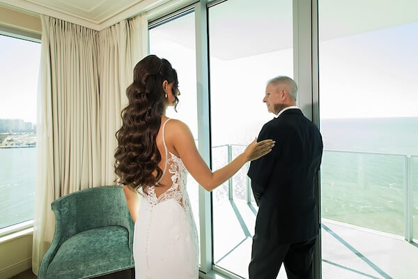 After getting ready, it was time for Shannon to have a little special time with her dad. It was really touching. The bride had a special note for her father. They took some family photos with mom, and then it was off for Shannon’s first look with Kervin.