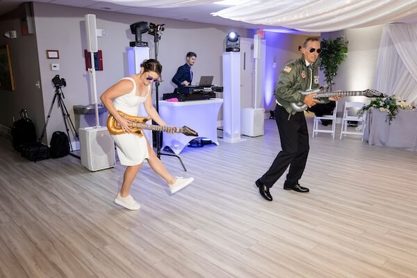 A fun, hand-decorated surfboard with the couple’s names and wedding date made a fun and unique guest book.