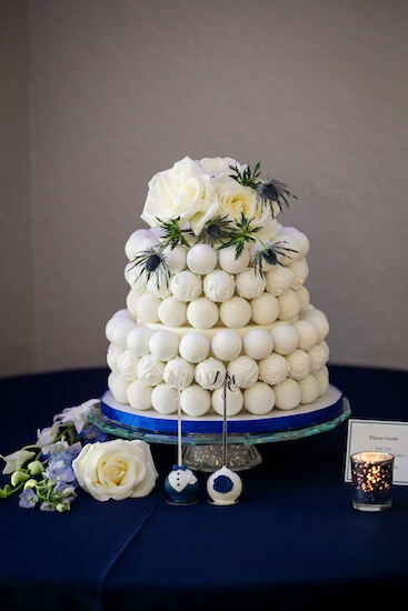 Delicious hand-dipped cake pops replaced the couple’s wedding cake, and Italian Wedding Cake and Cinnamon Vanilla flavors were quite the hit. And how cute are these bride and groom pops?