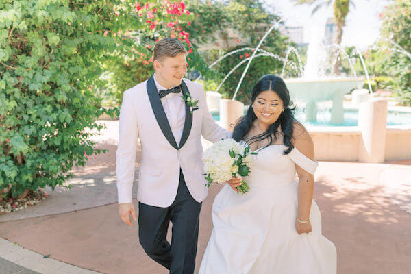 Our Special Moments Event Planning team loved being part of Julianne and John’s beautiful St Petersburg wedding. This beautiful black and white wedding incorporated touches of gold that added to its elegance. Julianne wore a soft white Stella York wedding gown with a sweetheart neckline and cap sleeves. For her accessories she selected…