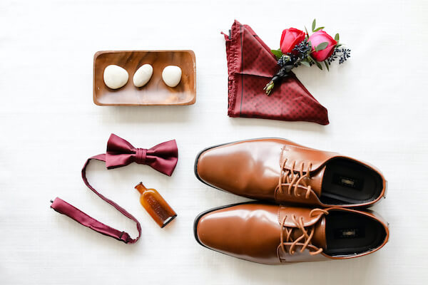 Tim looked very handsome in a Navy blue suit with a light grey vest. The burgundy bow tie and pocket square added a nice pop of color. And how adorable are the custom cuff links Shaina gifted her groom-to-be?
