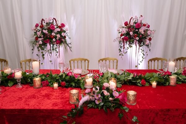 At one end of the dance floor was the couple’s massive head table. This incredible table sat twenty people, with the newlyweds in the center.