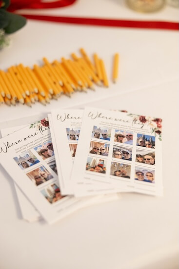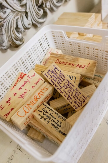 During cocktail hour, guests enjoyed a little “Bride and Groom Trivia” and were invited to write messages on Jenga blocks.