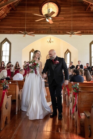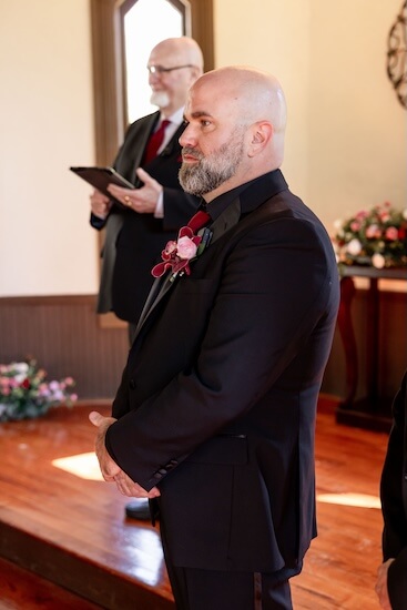 Having spent some time together, it was time to head inside the chapel. With everyone seated, Kent waited patiently for his beautiful bride’s arrival.