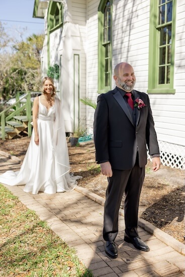 Day one of the two-day Tampa Bay wedding took place at the Andrews Memorial Chapel. Dressed and ready, it was time for Sofia and Kent’s first look.