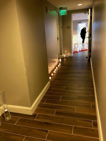 The hallway leading to the Caladesi Room was lined with candles and six roses, each with a specifically selected bible verse.